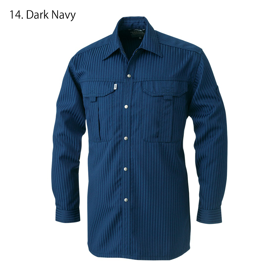 • Designed for all-season workwear use, it features twin chest flap pockets, a left-sleeve pen holder and reinforced seams—all wrapped in clean Japanese workwear form that holds shape through wash and wear